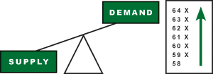 When the Supply of a fund decreases and the Demand increases, the rising price is recorded with an "X".
