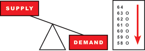 When the Supply of a fund increases and the Demand decreases, the falling price is recorded with an "O".